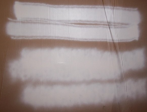 Onregelmatige bewegingen. Voor gelijkmatige vloeiing, is gelijkmatige dekking belangrijk. Wapper je met je pistool, is je snelheid niet volledig gelijk of bedek je een strook meer dan anderen? Dan kun je tailingpatronen krijgen in je resultaat.